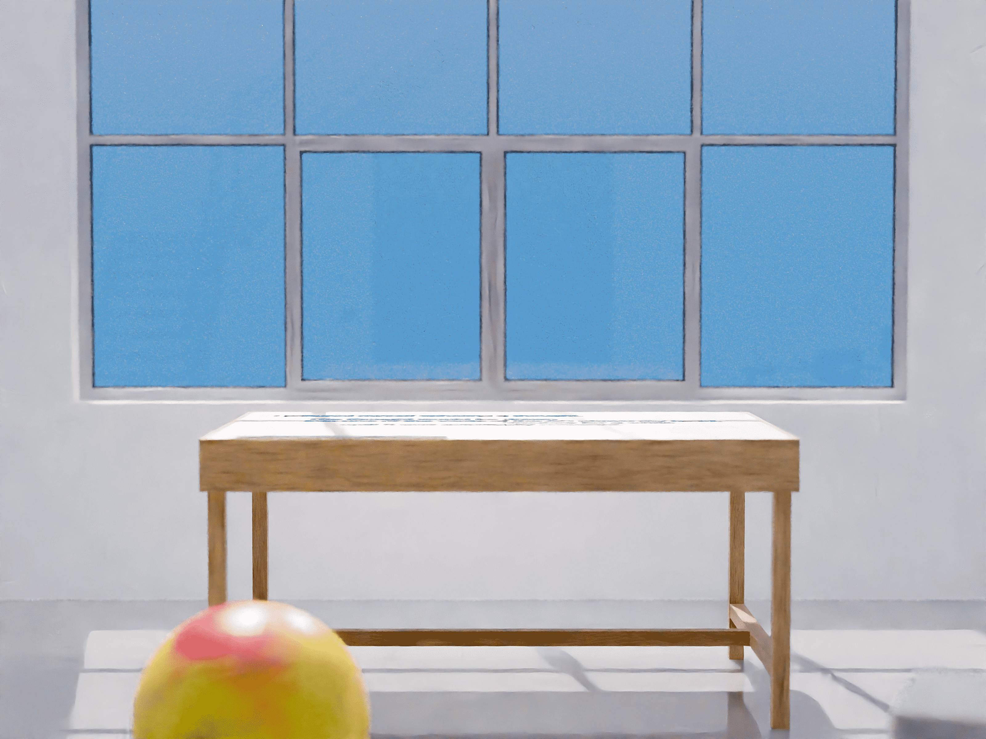 The draft from the open window shuts the door behind you. Sound is coming from the mezzanine.
